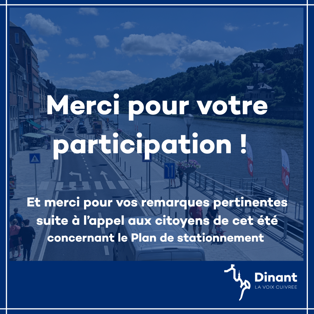 Nous tenons à vous remercier sincèrement pour votre participation et vos remarques pertinentes émises dans le cadre du Plan de stationnement.