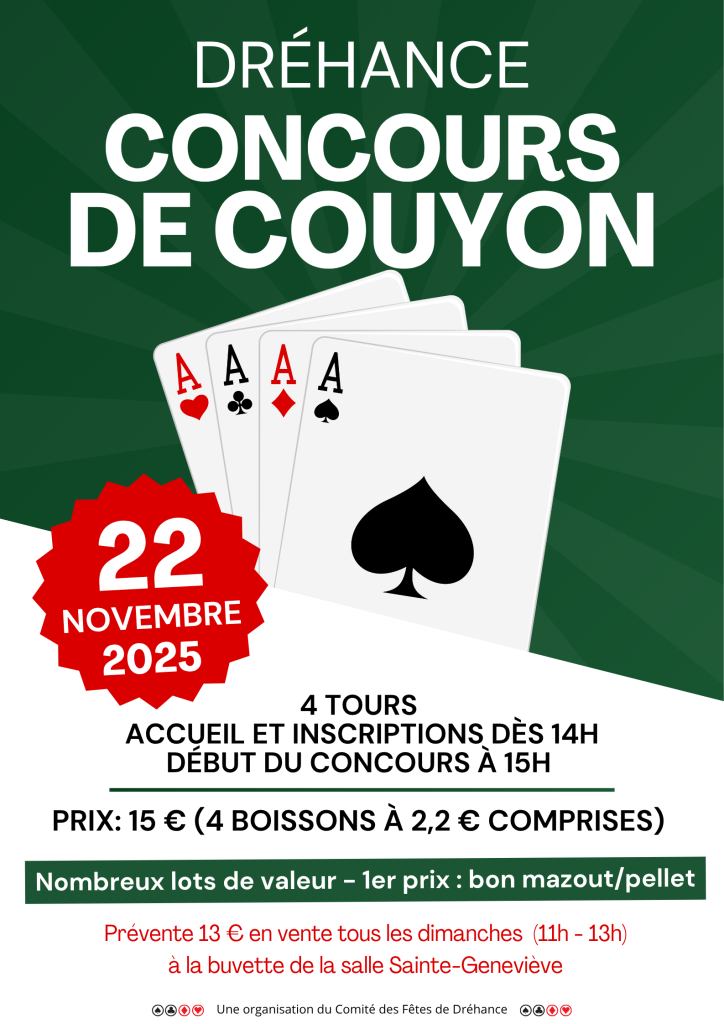 🎟️ Prévente : 13 €, en vente tous les dimanches (de 11h à 13h) à la buvette de la salle Sainte-Geneviève.