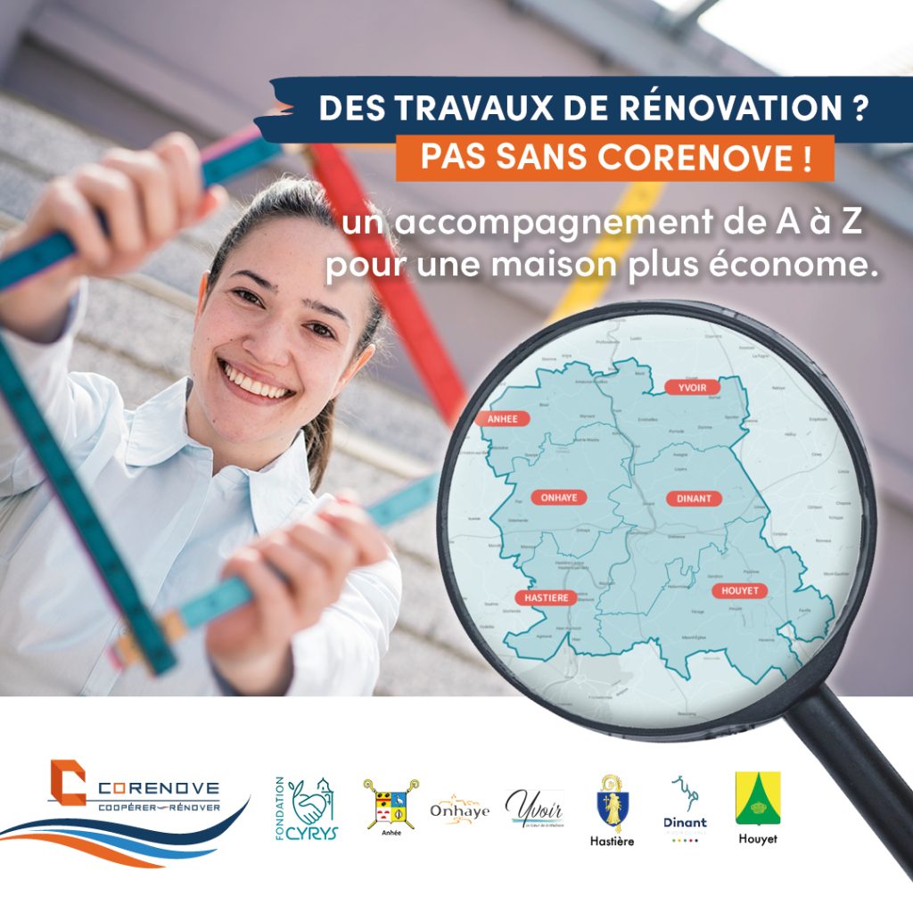 La Commune de Dinant vous invite à une séance d’information dédiée à l’opération Rénov’Energie – CORENOVE, une initiative menée en collaboration avec la Fondation CYRYS.