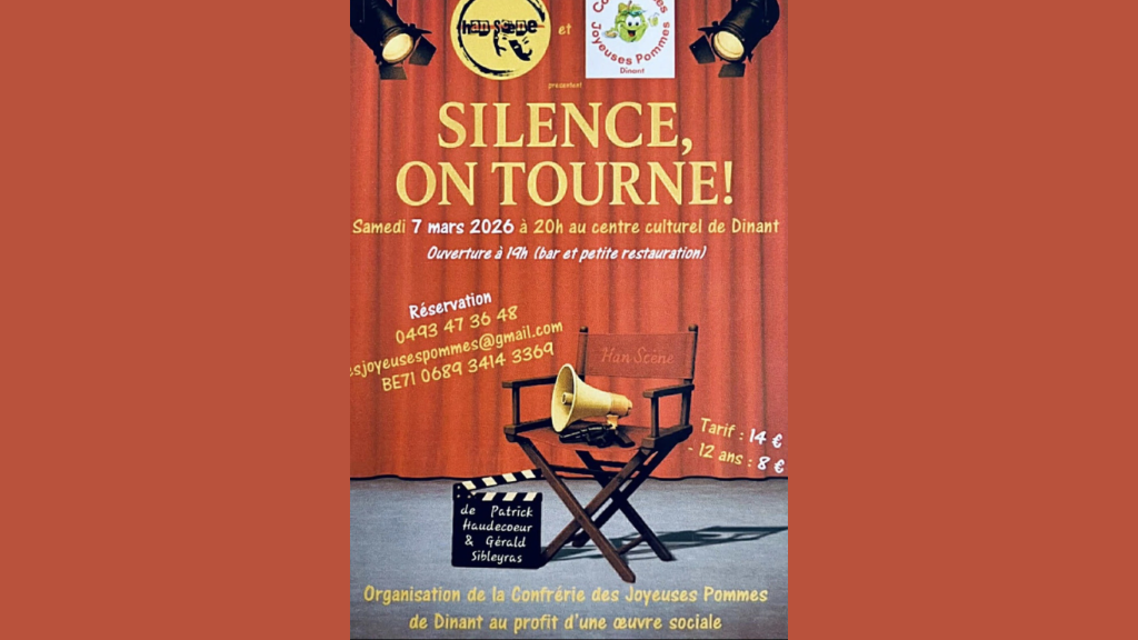 La Confrérie des Joyeuses Pommes de Dinant organise une grande soirée théâtre le samedi 7 mars 2026 au Centre culturel de Dinant.